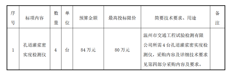 best365足球官网所属温州市交通工程试验检测有限公司关于4台孔道灌浆密实度检测仪项目(自主)的采购公告