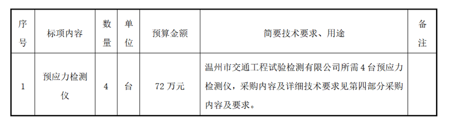 best365足球官网所属温州市交通工程试验检测有限公司关于4台预应力检测仪项目(自主)的采购公告