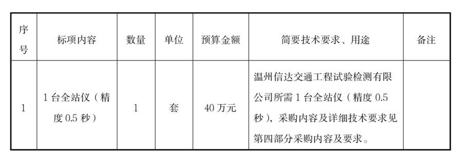 best365足球官网所属温州信达交通工程试验检测有限公司关于1台全站仪(精度0.5秒)项目(自主)的采购公告