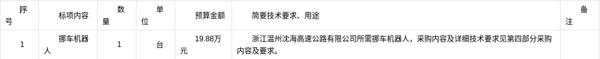 best365足球官网所属浙江温州沈海高速公路有限公司关于挪车机器人项目(自主)的采购公告