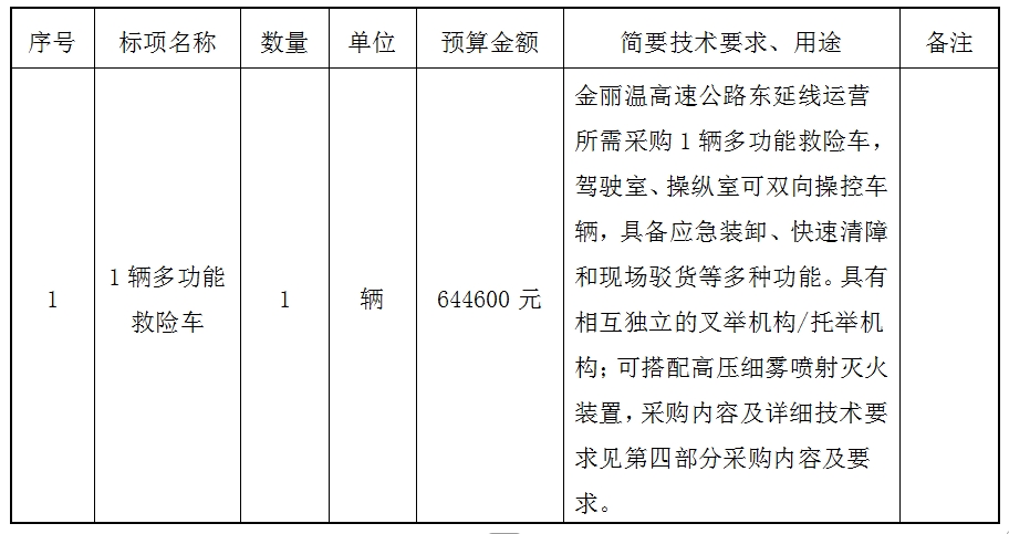best365足球官网所属温州金丽温高速公路东延线有限公司关于1辆多功能救险车(自主)的采购公告