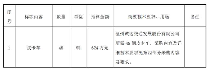 best365足球官网所属温州诚达交通发展股份有限公司关于48辆皮卡车项目的征求意见公示