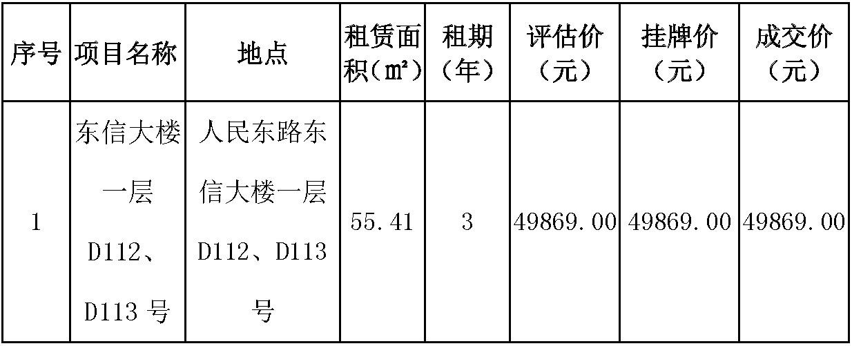 best365足球官网房开公司人民东路东信大楼一层D112、D113号资产出租结果公示