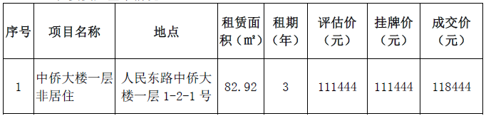 温州市交通发展集团有限公司下属温州房地产开发股份有限公司就所属东信大楼、中侨大楼等多处资产项目于2021年9月6日发布招租公告,现将招租结果公示如下: