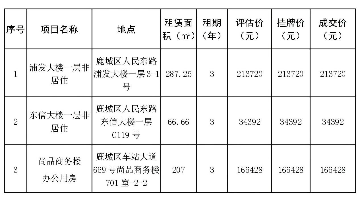 best365足球官网房开公司浦发大楼一层3-1号、东信大楼一层C119号、尚品商务楼701室-2-2资产出租结果公示