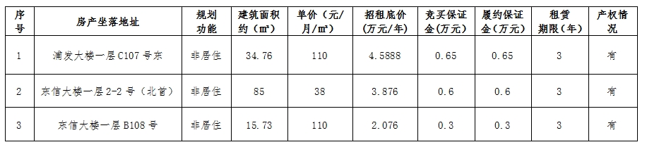 现委托温州联合产权交易中心有限公司,定于2024年10月12日15时整(延期时拍卖会时间报名时告知),在温州开诚拍卖有限公司拍卖厅,对温州市鹿城区东信大厦及浦发大厦等3宗房产租赁权进行增价式拍卖,具体拍卖事宜详见《竞买协议》及《房产租赁合同》(样本)。