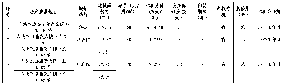 best365足球官网温州房地产开发股份有限公司关于温州市鹿城区车站大道669号尚品商务楼301室、人民东路浦发大楼一层3-2号、人民东路浦发大楼一层D107号、人民东路浦发大楼一层D108号、人民东路浦发大楼一层D109号非居住用房三年租赁权交易公告