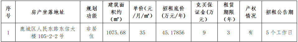 东信大楼105-2-2号(北侧)非居住用房租赁权交易公告