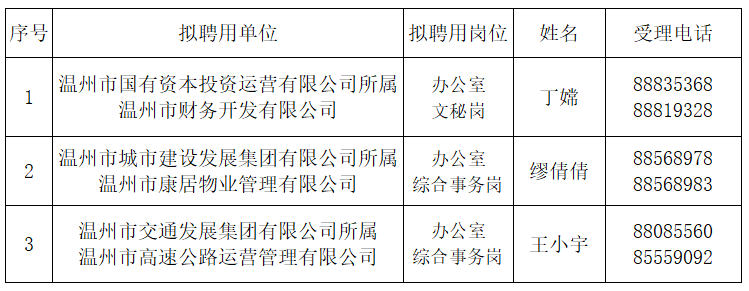 温州市市属国有企业面向退役女兵招聘拟聘用人员公示