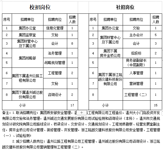 三、校招招聘办法:此次校招招聘办法同社招一致,所有岗位按笔试和面试方式进行,具体内容见集团网站(http://www.wzjfjt.cn)《温州市交通发展集团2022届高校毕业生校园招聘会(温州大学专场)暨经营人才招聘会公告》。