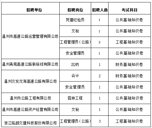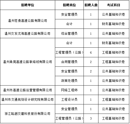 社招岗位及招聘人数调整。温州甬莞高速公路联络线有限公司的工程管理员(公路)岗位报名人数因达不到招聘人数要求,予以核减招聘人数。调整后的招聘岗位及人数见下表: