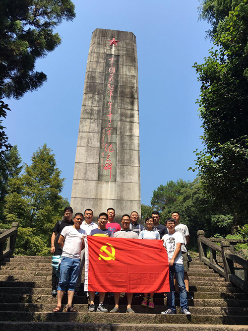 青山埋忠魂,碧血印丹青。大家冒着酷暑,拾级而上,缓步来到中国工农红军第十三军纪念碑,怀着对革命先烈的无比敬仰之情瞻仰了纪念碑。在党支部陈金社书记的带领下,面对党旗,挥拳致意,重温了入党誓词。随后还参观了红十三军军部旧址陈列室、纪念馆,纪念馆内大量的实物、图片全方位、多角度、多层次地反映了浙南大地的英烈们以及不平凡的革命历程,大家仔细聆听了讲解员的解说,认真浏览了实物和图片。