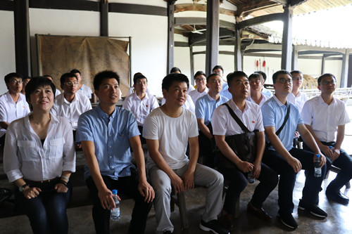 当天下午,参加此次活动的党员队伍来到了永嘉县红十三军军部旧址。在纪念碑广场前,首先映入眼帘的是一座花岗岩石雕,一群神情激愤,举着红缨枪,扛着大刀,拿着手雷的义士向着前方挺进。漫步走过五尺大桥,遥遥看见屹立在青山绿树丛中的中国工农红军第十三军纪念碑,庄严、肃穆。步入纪念馆,纪录片向党员们生动讲述红十三军的光辉历史,一张张图文并茂的老照片向人们无声述说着那段永载史册的往事,1700余名革命同志牺牲于此,党员们悲痛惋惜的同时也深感革命胜利的不易。