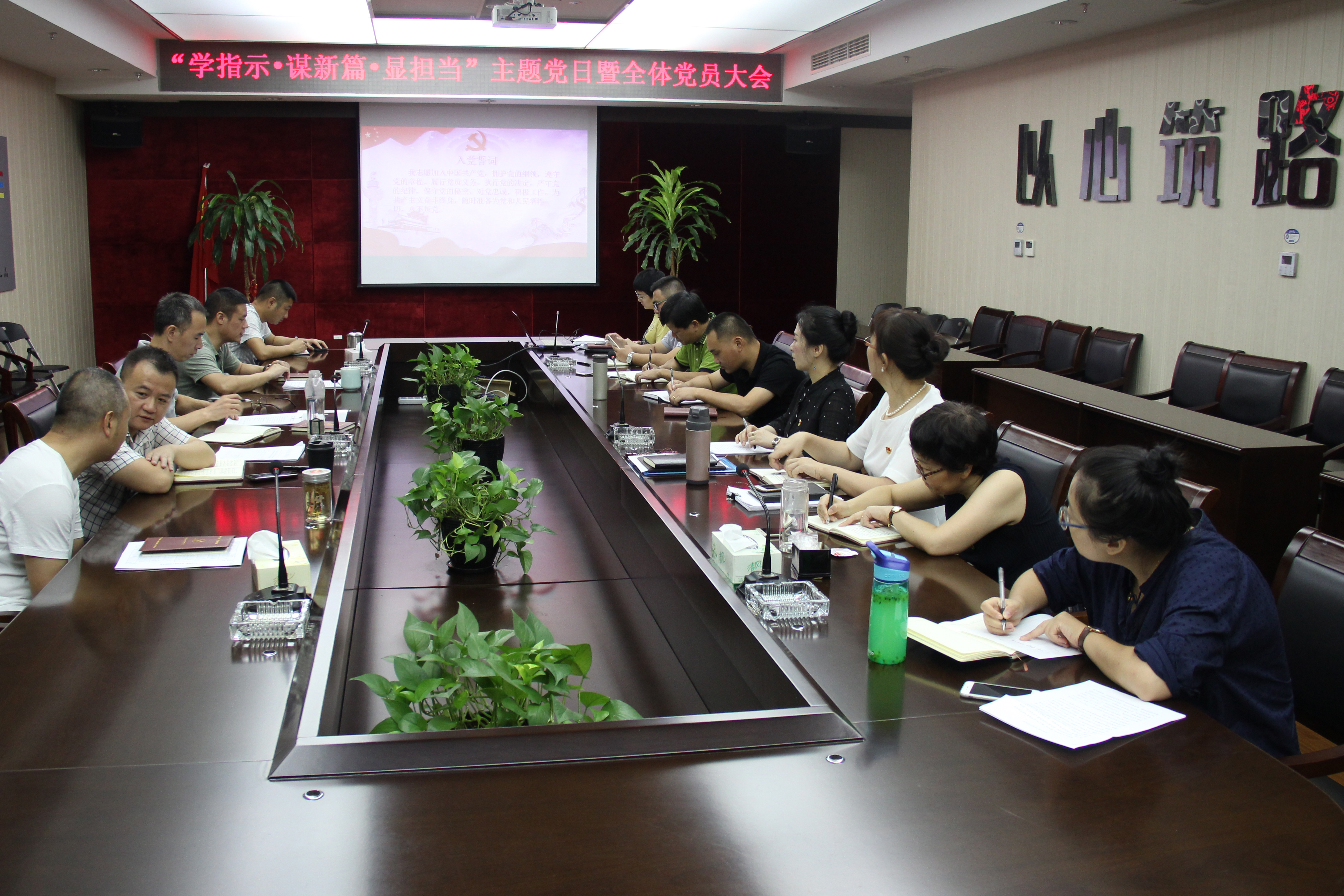 全体党员在佩戴党徽重温了入党誓词后,由党支部书记陈照亮带头诵读了《党章》第八章,并认认真真的原原本本的集体学习了习近平总书记对浙江工作的重要指示精神。与会党员结合习近平总书记重要指示精神,把自己摆进去,把职责和工作摆进去、把思想认识摆进去,一个一个轮流畅谈感想、畅谈差距、畅谈举措。