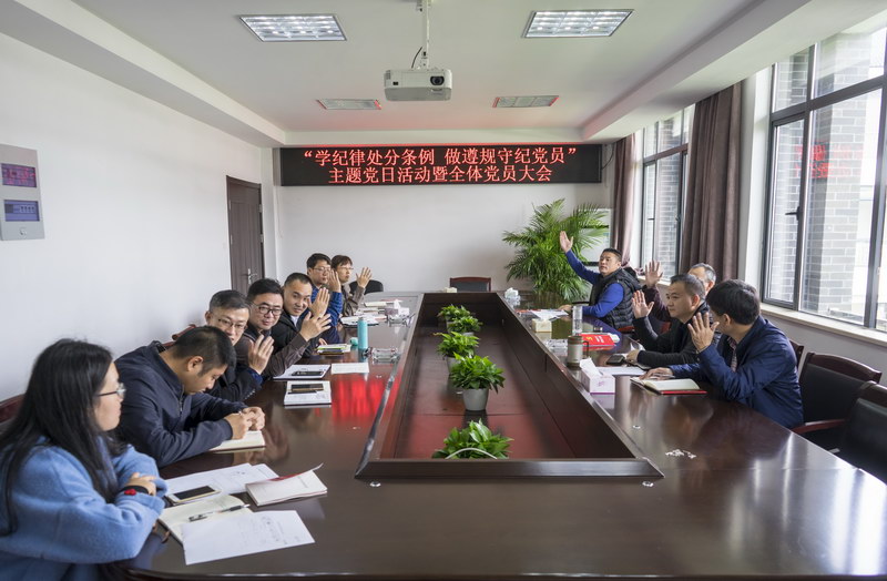 会上,首先全体党员佩戴党徽,在党旗下重温了入党誓词,并按规定收缴党费。党支部陈照亮为11月“政治生日”党员送上了政治礼物,并提出殷切期望。随后,会议组织与会人员学习《党章》第十一章,着重学习了《中国共产党纪律处分条例》修订的重大意义、背景原则和主要内容,陈照亮更是结合现实案例对《条例》进行深入解读,他指出,新修订的《条例》充分彰显了以习近平同志为核心的党中央用严明的纪律管党治党的坚定决心,其政治性更强,内容更科学,逻辑更严谨。党员干部把握好党章党规党纪的“尺子”,保持底线意识,做事坚持原则,使守纪律、讲规矩真正成为党员干部的日常习惯。