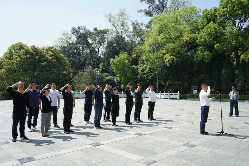 凛然英雄气,激荡天地间。苍松翠柏掩映下的翠微山烈士陵园纪念广场庄严肃穆。伴随着庄严高亢的国歌声,全体党员肃立,默哀致敬,并向革命烈士敬献花圈,全体党员重温入党誓词,以此深切悼念革命先烈,缅怀先辈丰功伟绩,用实际行动传承红色基因。