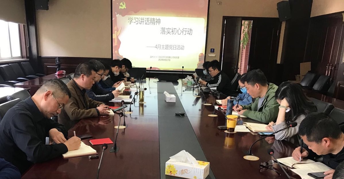 4月27日上午,大小门岛公司党支部开展“学习讲话精神 落实初心行动”4月主题党日活动。会议由王卫主持,全体党员、积极分子、预备党员参加。