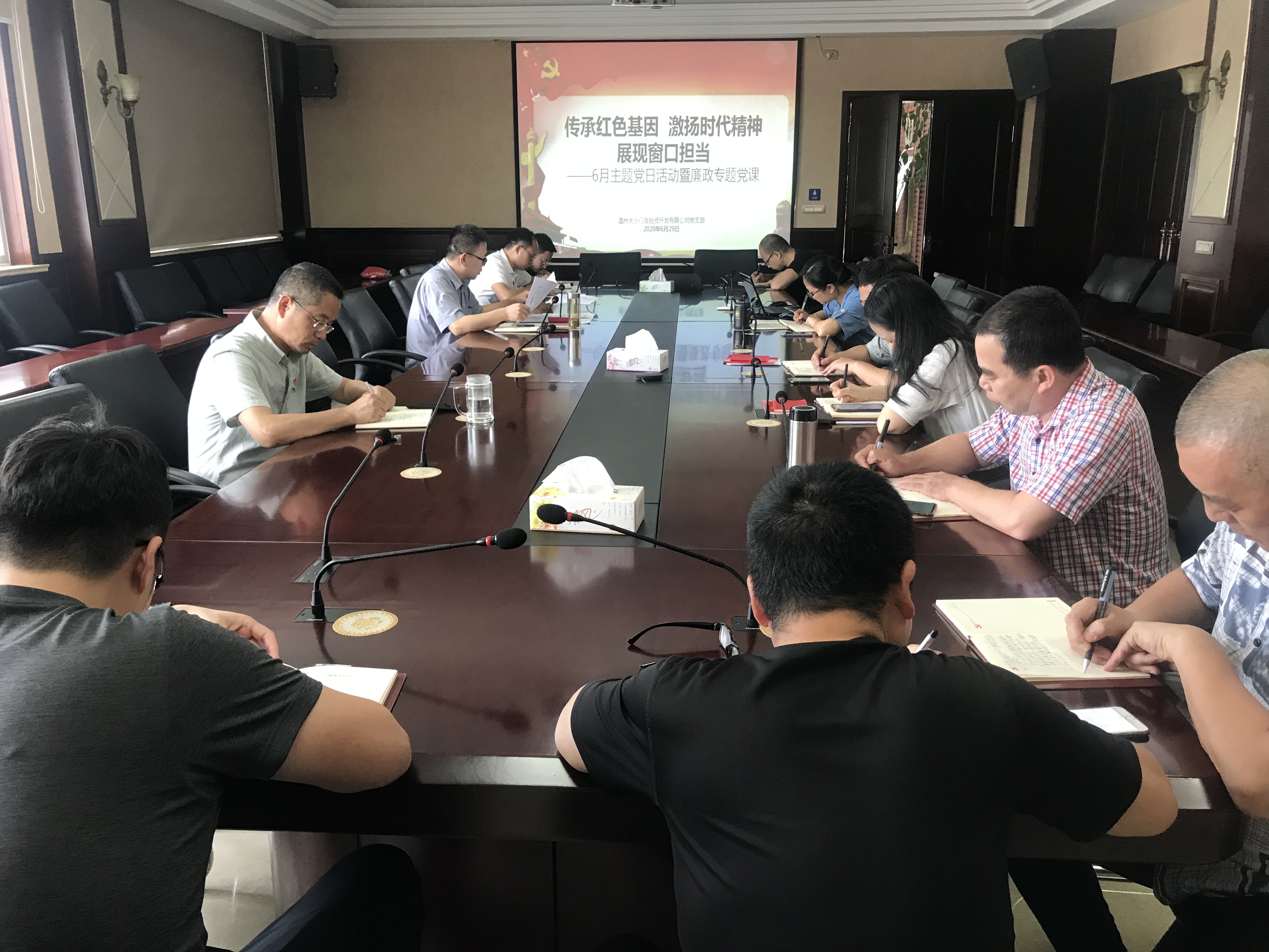 会议上王卫上“坚守底线 不越红线”廉政专题党课,随后提出要求,每位党员要牢记自身的职责,不断提高自己的思想水平和工作能力,在工作中做到廉洁自律,坚守高尚情操,抵制不良风气,保持初心,全心全意为公司转型发展作出自己应有的贡献。随后王卫分析总结上半年党风廉政建设工作,并对下半年党风廉政建设重点工作进行安排部署。