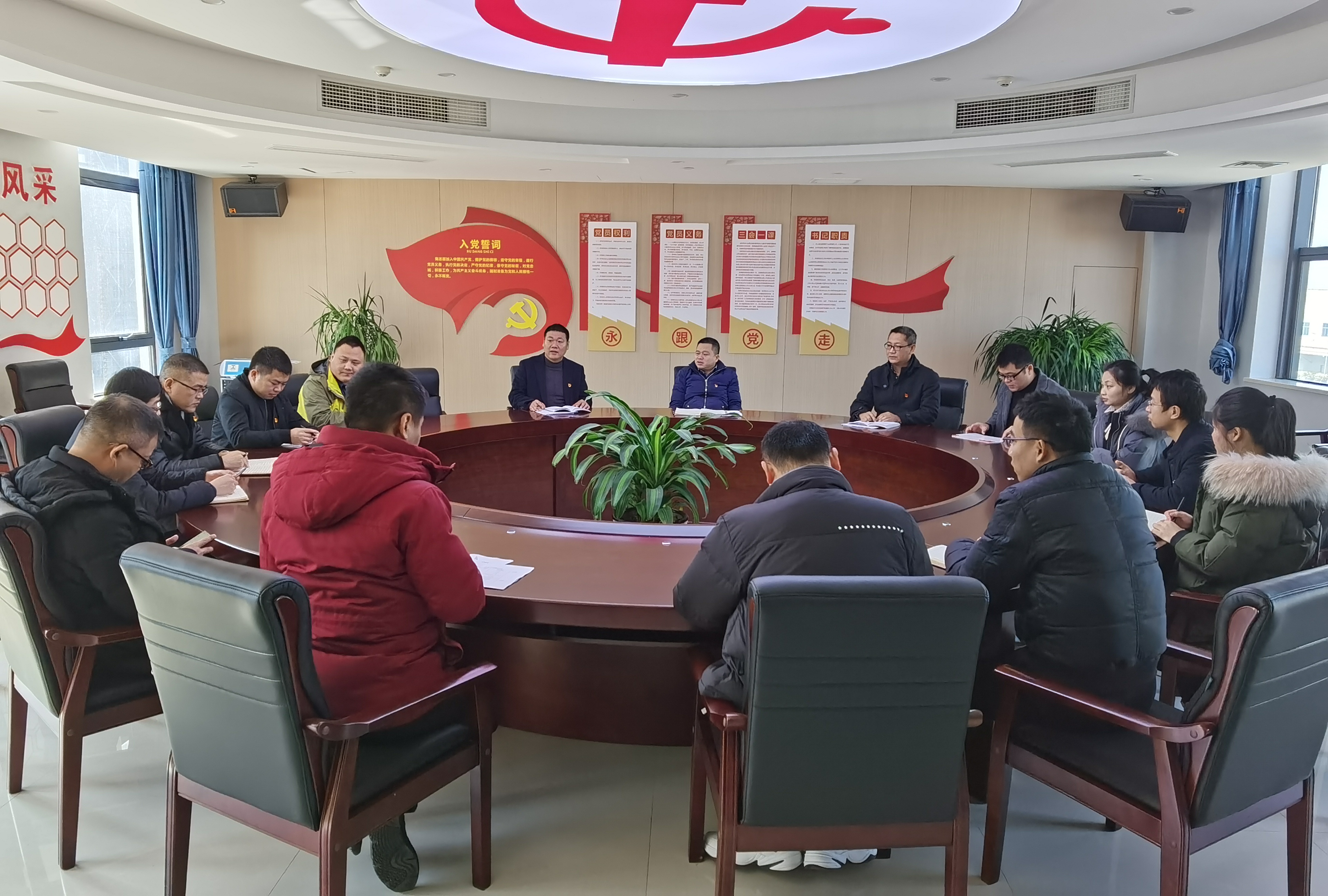 在蔡邦国的带领下,全体党员面对党旗,庄严地举起右手,大声宣读入党誓词,重温当年的决心和信念;全体党员认真学习《中国共产党第十九届中央纪律检查委员会第五次全体会议公报》《市国资委纪检组关于做好2021年元旦、春节期间正风肃纪工作的通知》及习近平法治思想和《中国共产党党员权利保障条例》。