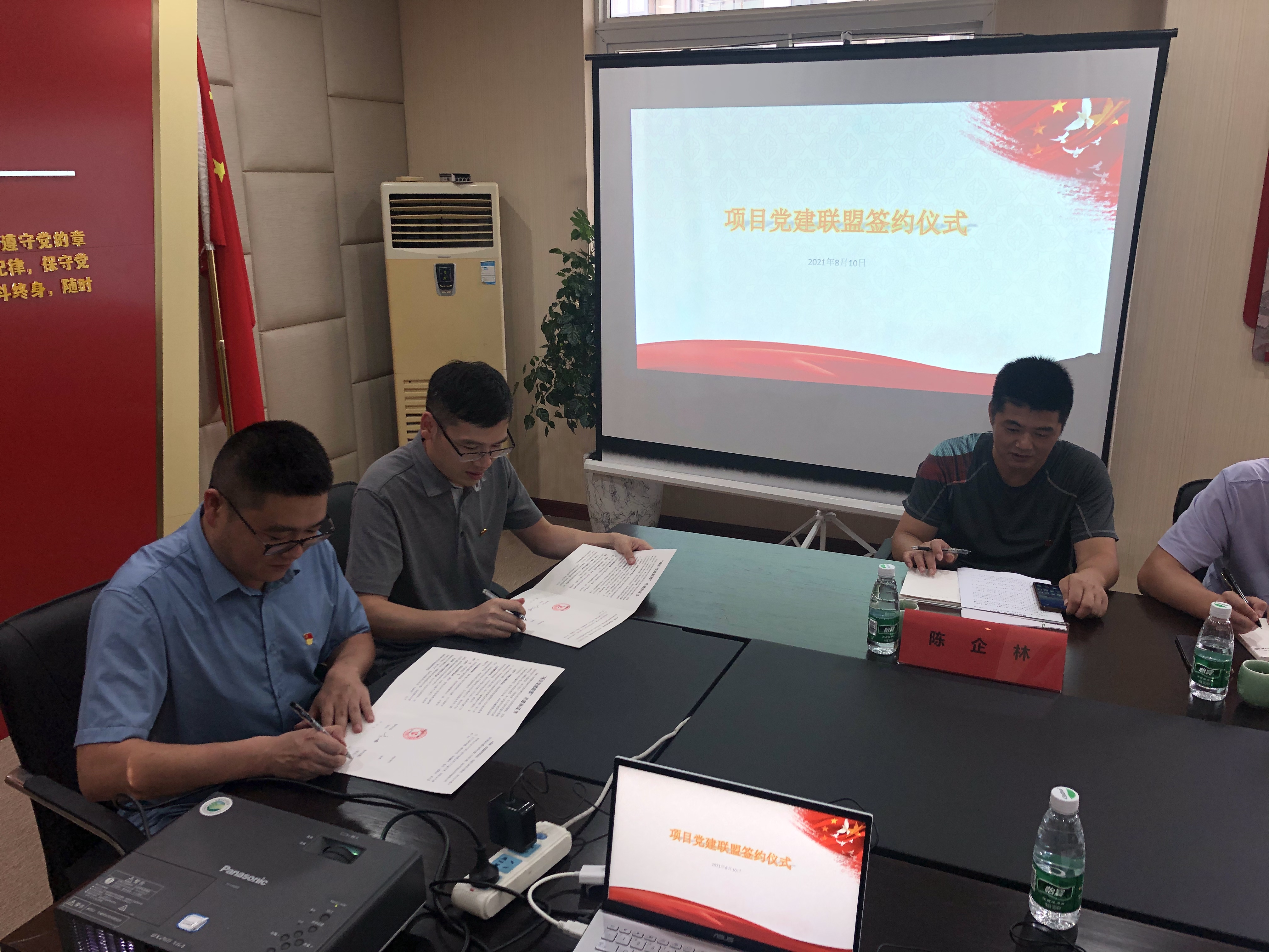 8月10日下午,为创新基层党组织建设,实现基层党组织优势互补,用党建凝聚合力,组建党建联盟,充分发挥基层党组织和广大党员先锋模范作用,共同面对和解决珑头湾项目的相关问题。党建联盟签约仪式暨“守好红色根脉,彰显奋进力量”主题党日活动在金桥公司召开。金桥公司党支部,洞头区重点项目服务中心党支部全体党员参加会议。