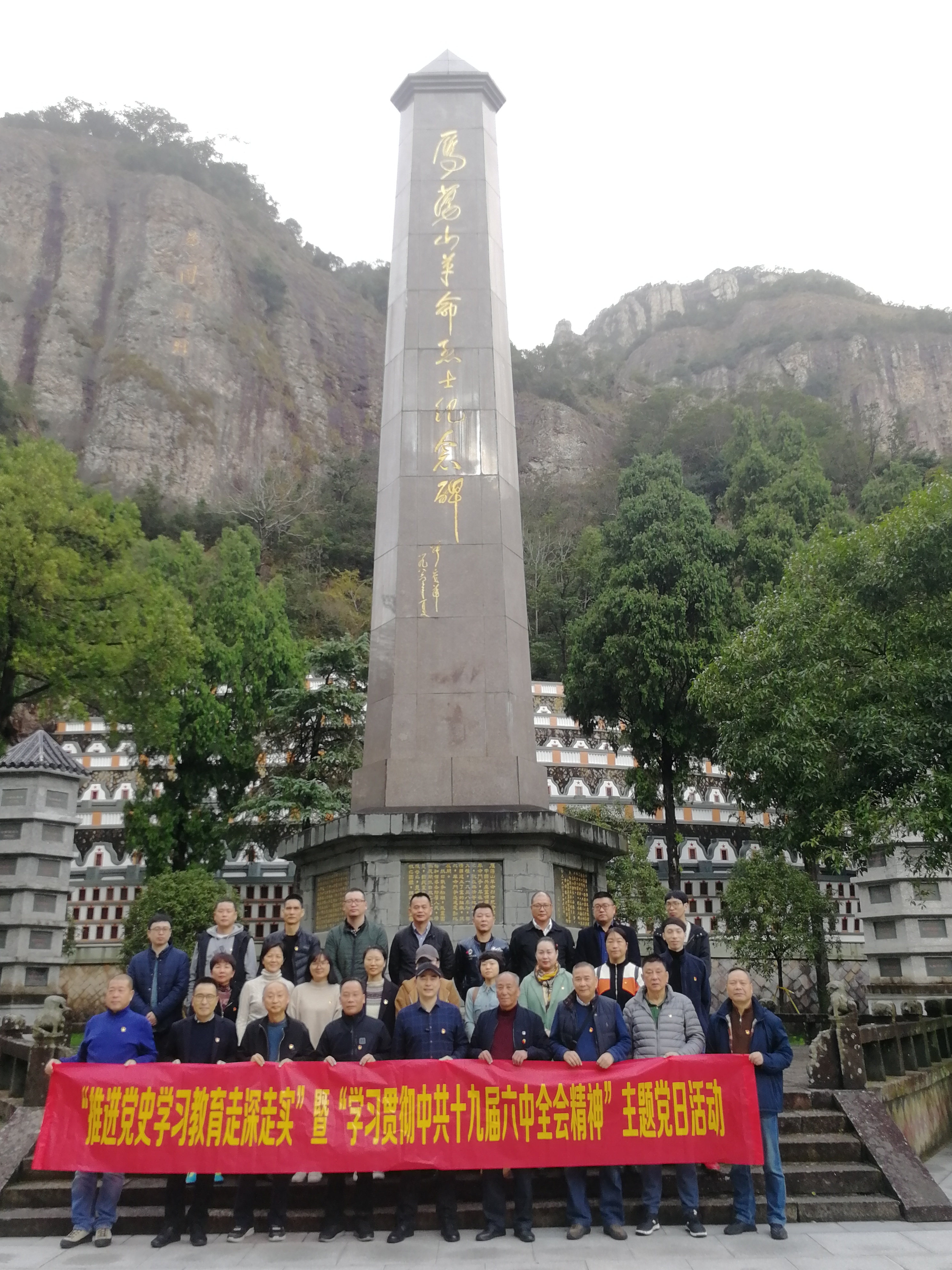 房开公司党总支一行首先前往浙江省爱国主义教育基地——雁荡山革命烈士陵园,体悟先烈事迹和革命精神。全体党员走进烈士纪念馆,阅读历史图片和资料,学习革命先烈们奋斗的英勇事迹;在烈士纪念碑前,全体党员在党总支书记沈振桓带领下向英勇献身的革命先烈鞠躬默哀,致以最深沉的悼念,同时还重温了入党誓词。