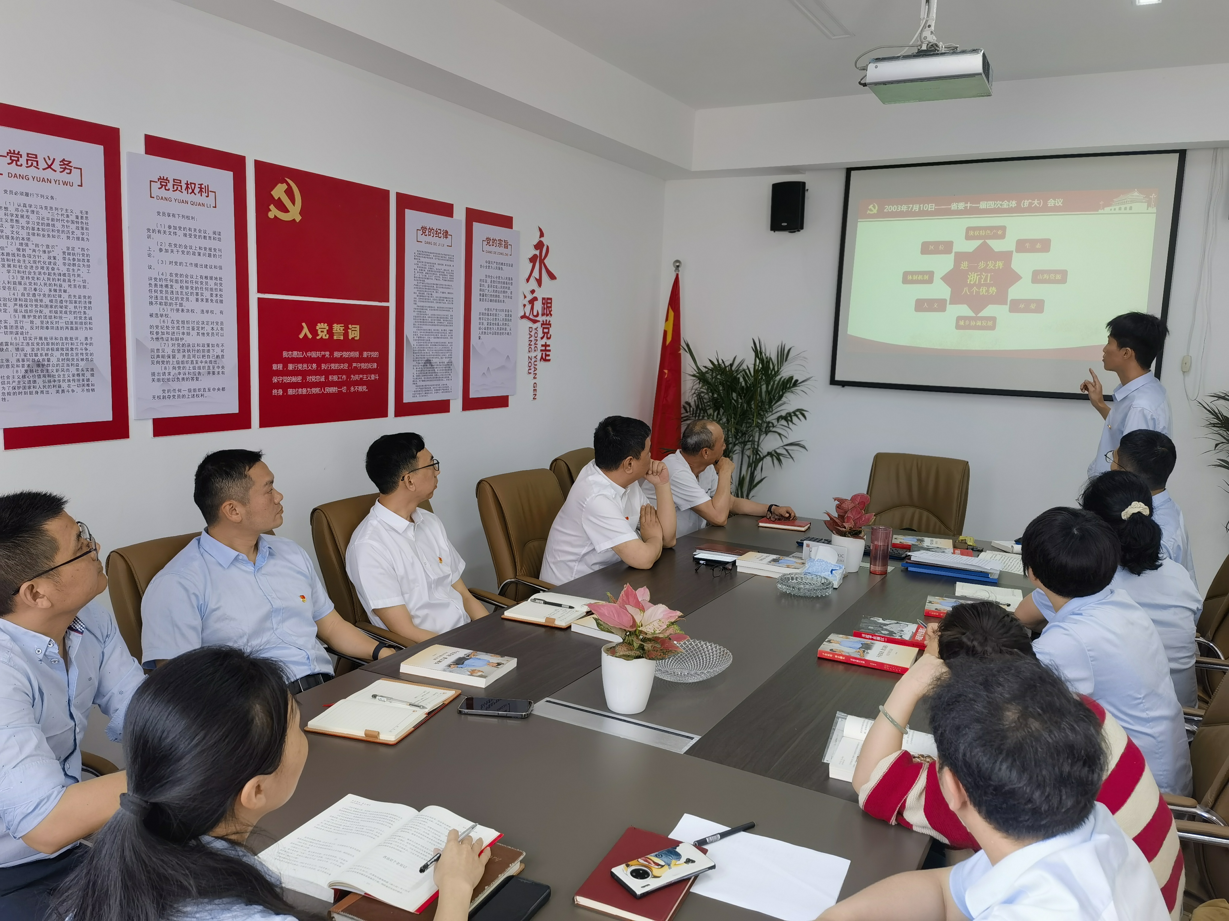 首先,与会人员共同阅读《习近平在浙江》和《干在实处 勇立潮头》中有关“八八战略”篇章,围绕学习内容聊心得、谈体会。随后,青年党员赵暄为我们宣讲《从身边出发感受“八八战略”》。他从战略内容、战略影响和我们眼中的“八八战略”三部分内容带领青年找准“八八战略”在实际工作中的落脚点。