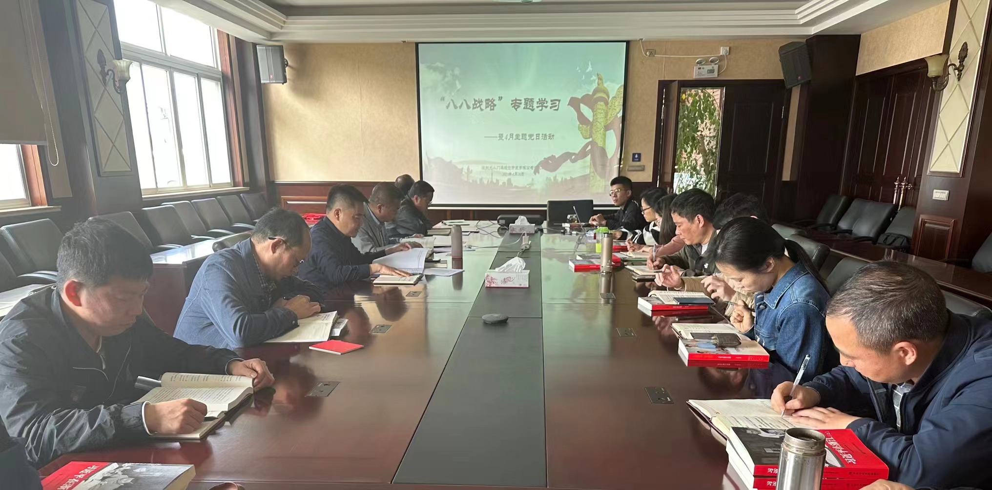 为深入学习习近平新时代中国特色社会主义思想,进一步深入学习贯彻党的二十大精神,推动“八八战略”深入人心,激励党员忠实践行“八八战略”,增强党员责任感和使命感,提振锐意进取、担当有为的精气神,4月25日,大小门岛公司党支部召开“八八战略”专题学习暨4月主题党日活动,会议由支部覃毅宝主持,全体党员、积极分子参加。
