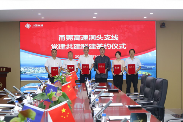 在“红七月·服务月”活动如火如荼开展之际,7月10日上午,甬莞公司党支部联合洞头区交通运输局党组、霓屿街道党工委及甬莞高速洞头支线参建单位党支部举行党建联建签约仪式。各方党组织负责人及党员代表齐聚一堂,共同开启海岛交通工程建设与基层治理协同共进的新篇章,以实际行动践行“红七月”的初心使命。