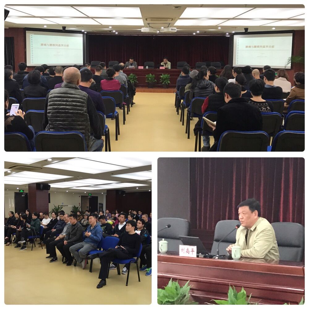 12月8日,“腰痛与腰椎间盘突出”健康知识讲座,在交投集团11楼会议室举行,浙江省中医药学会骨伤专业委员会理事刘尚平医生应邀主讲。讲座由集团党委委员、总经济师、工会主席王道川主持,来自集团系统各单位的100多名职工参加了讲座。