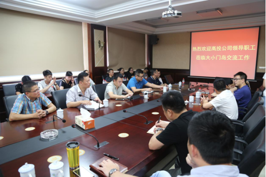 首先,在大小门岛公司进行座谈会。座谈会上, 大小门岛公司副总经理王卫介绍了公司概况和基础设施情况会上,高投公司对大小门岛公司的区域性开发建设的特点,对大小门岛的未来一致看好。两家兄弟公司共聚一堂,对工作、学习、生活都进行了热烈的讨论,并表明接下来会进一步加强合作与交流。紧接着,覃毅宝带领大家参观了国内首座集通水、通电、通车三通功能的特大型跨海大桥——大门大桥,和为温州海洋经济做好充分准备的近万亩围垦工程,以及各种专业的配套设施工程。