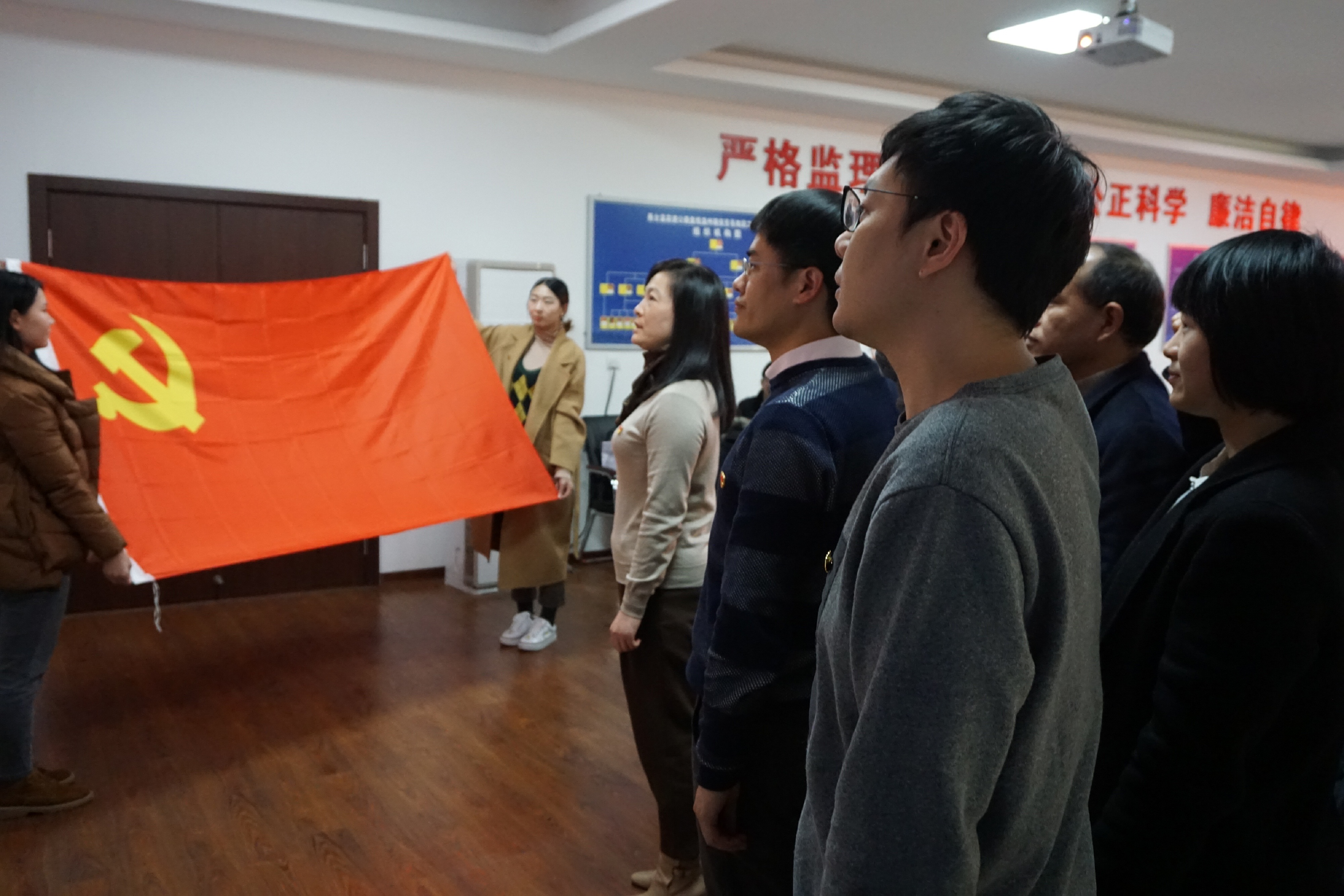 沈书记带领在座的所有党员,面对党旗和团旗重温入党誓词。让所有青年团员们见证党的庄严,激励团员青年永远跟着党走,并向党组织积极靠拢的决心和意愿。