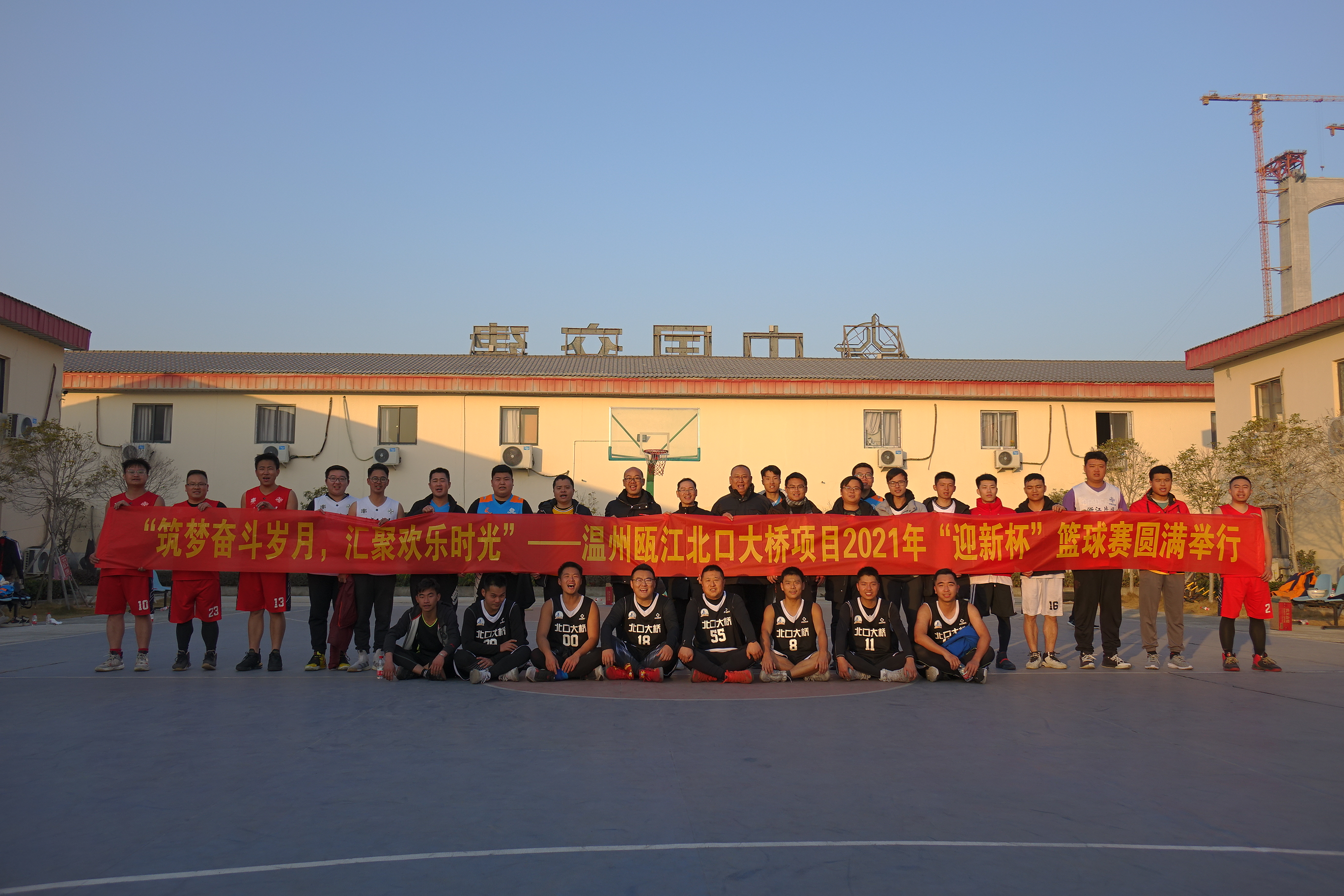 为迎接2021新年的到来,在新年之初展现瓯江北口大桥员工积极向上的进取精神与青春活力,锻炼身体和意志,增强参建各单位之间互相沟通交流,1月19日,瓯江口大桥团支部在土建三标项目部篮球场,举办瓯江北口大桥项目2021年“迎新杯”篮球赛。温州瓯江口大桥有限公司及土建三标项目部领导班子成员出席。
