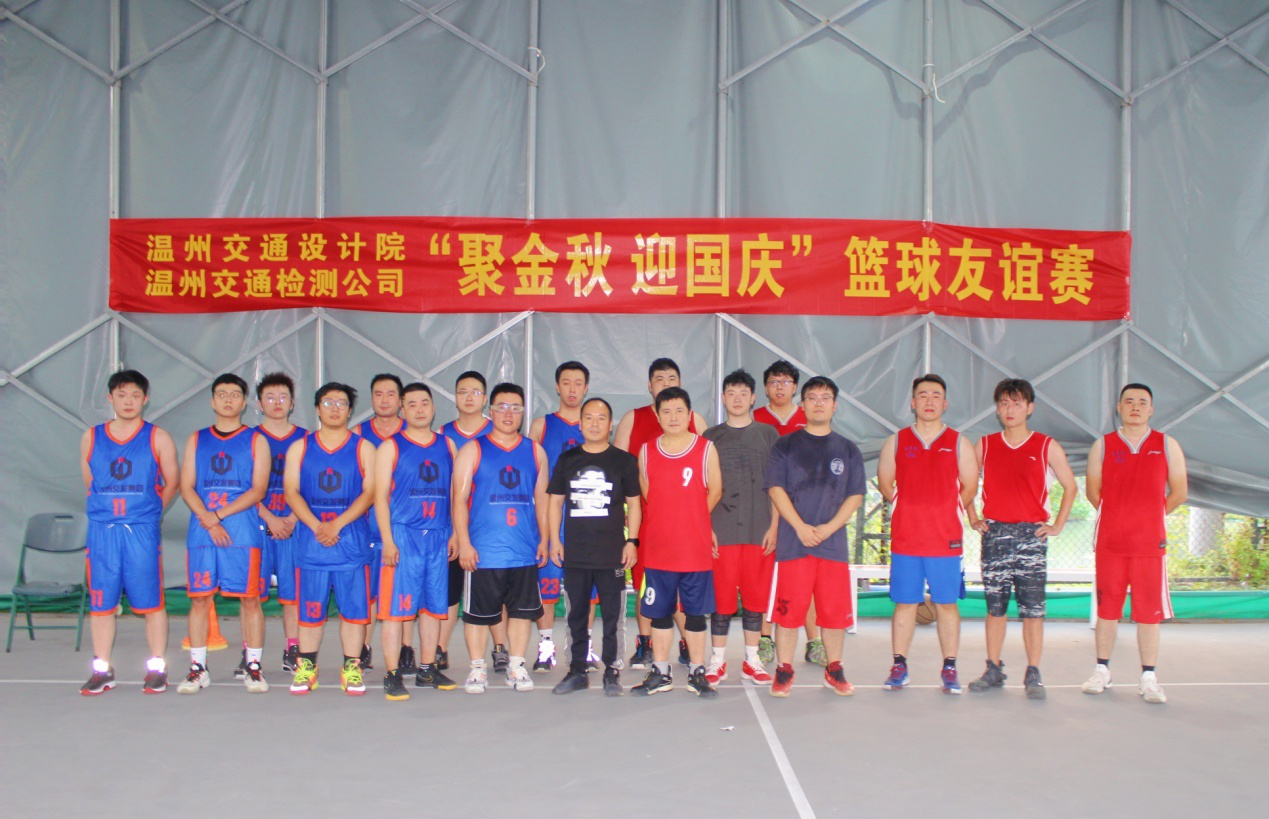 为促进企业凝聚力,提升职工幸福感,进一步丰富公司职工业余生活及交发系统内部联系,9月25日,温州市交通工程试验检测有限公司联合温州市交通设计院开展“聚金秋 迎国庆”篮球友谊赛。