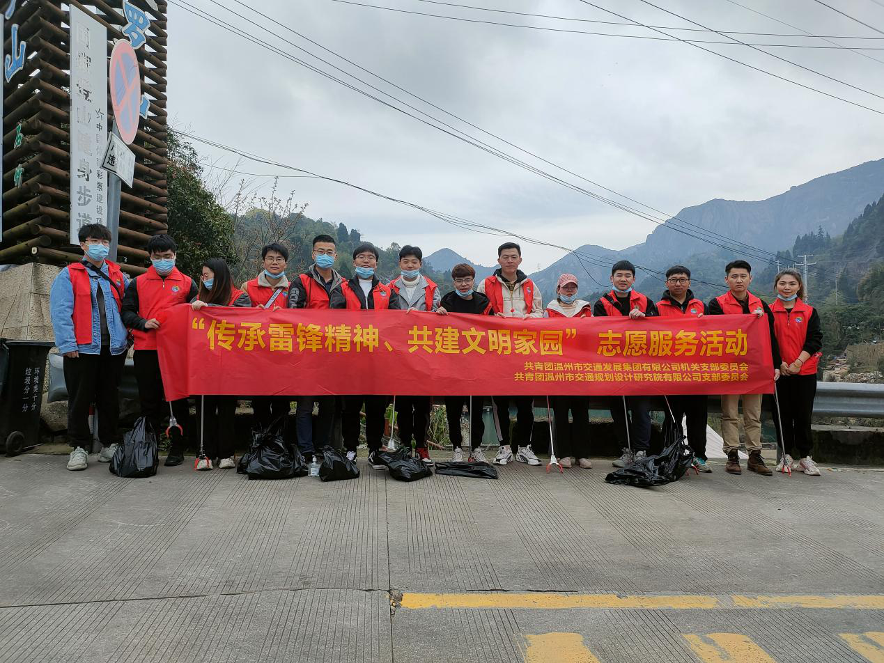 为学习道德模范、弘扬雷锋精神、争做雷锋传人,3月24日上午,温州市交通发展集团有限公司机关团支部与温州市交通规划设计研究院有限公司团支部共同前往大罗山开展“传承雷锋精神,共建文明家园”志愿服务活动。