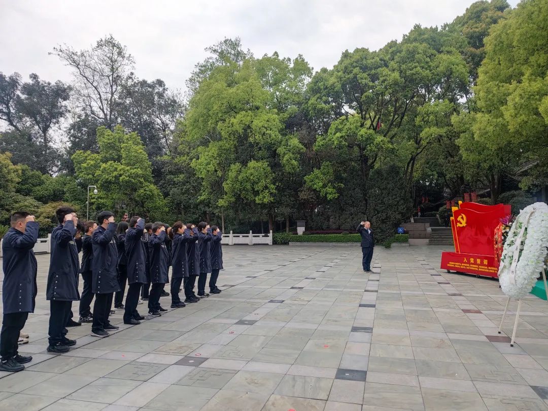 驻足凝望、低首默哀,志愿者通过奏唱国歌,三分钟默哀,为烈士献花圈,重温入党誓词等方式缅怀烈士。随后,两名青年代表向纪念碑敬献花篮,全体人员依次从左向右缓步绕行,瞻仰烈士纪念碑,并敬献菊花,表达缅怀之情。