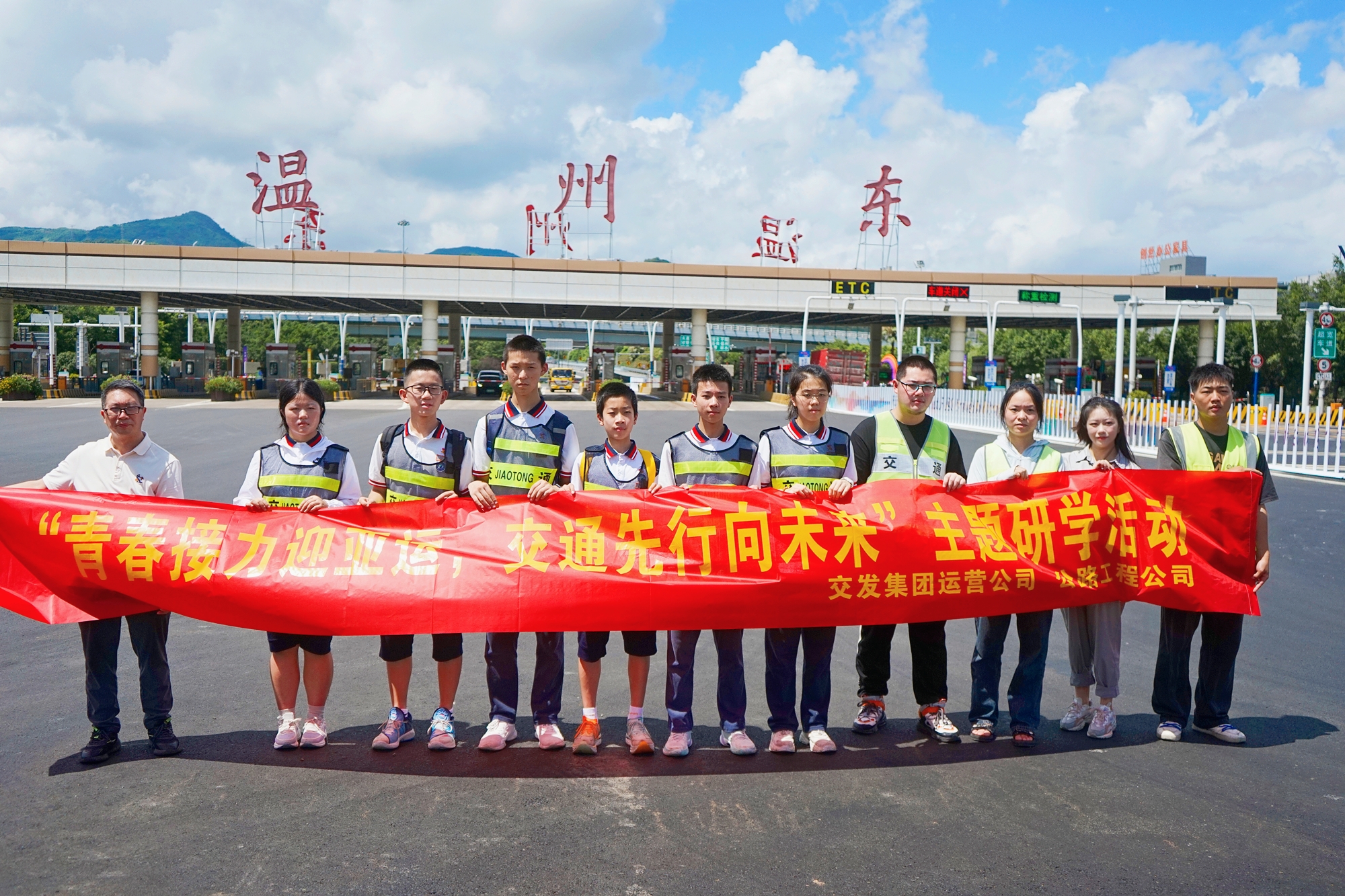 为推进青年学生对迎亚运、保安全、创文明背景下温州交通的了解,7月16日上午,运营公司联合工程公司开展“青春接力迎亚运,交通先行向未来”主题研学活动,青年宣讲员带领来自温州市第二实验中学的8名学生走近温州东收费站,走进三尺岗亭,从高速公路角度看温州交通迎亚运,从文明服务体验“城市形象窗口美”。
