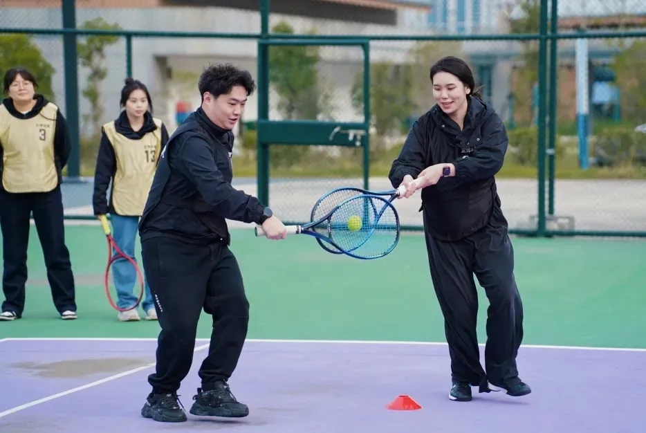 赛场上,选手们默契配合、各展风采。此次活动让青年职工们在赛场上从“面对面”的同事,真正成为了“肩并肩”的队友。大家在趣味挑战中协同拼搏,在欢声笑语中加深了解、释放压力,让“上下同心”的团队力量与青春活力在网球场上碰撞交融,充分展现了青年职工昂扬向上的崭新风貌。