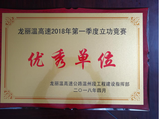 4月13日,筑诚公司龙丽温高速公路文瑞段工程第一监理办在“2018年第一季度立功竞赛”评比活动中,荣获“优秀单位”的称号。 筑诚公司文瑞一监办连续5次稳居第一,成绩喜人。一监办主要负责人表示,作为交通工程建设者,要在抓质量、保安全、促进度的基础上不断地探讨、研究、学习,面对新形势、新规范要努力学习、自我加压、与时俱进,不断提高业务素质。