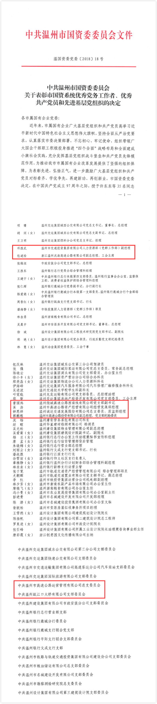 陈晓新荣获“温州市市属国有企业突出贡献个人”