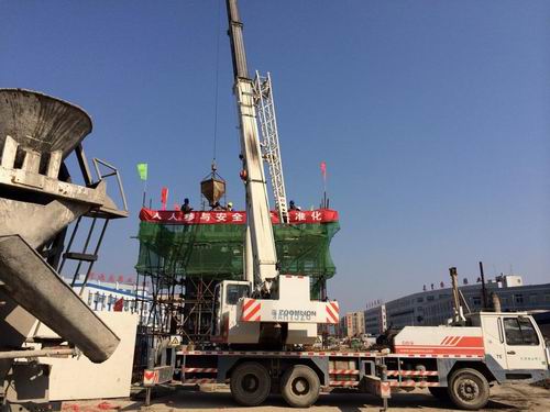 该墩柱为2.5m×1.8m×7.361m方形墩柱,设计方量33.12立方,实际浇筑34立方。为保证墩身浇筑质量,第3标段严格控制原材料质量,检修振捣棒、工地变压器、垂直起重设备等施工机具,确保施工过程中无故障发生。同时,组织相关人员对图纸进行复核,并对技术人员和施工班组进行全面的技术交底。本次浇筑采用串桶入模方式,最大程度防止自由下落的高度过大造成混凝土离析现象的发生。混凝土坍落度和分层厚度分别控制在12~16cm和30~50cm之间,振捣过程中严格控制振捣棒的插入拔出速度、插入点间距及深度,以防出现过振与漏振现象。