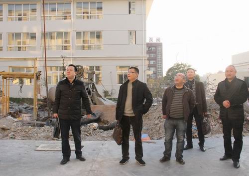 检查过程中,秦总首先对工程检测中心的建设进度予以了充分肯定,同时对大楼附属设施及周边道路拓宽等工作提出指导意见,要求完善好停车场、绿化、道路拓宽拐角等建设。最后他希望,办公楼装修布置要以功能用途为前提,狠刹奢侈浪费的风气,确保工程检测中心早日投入使用。