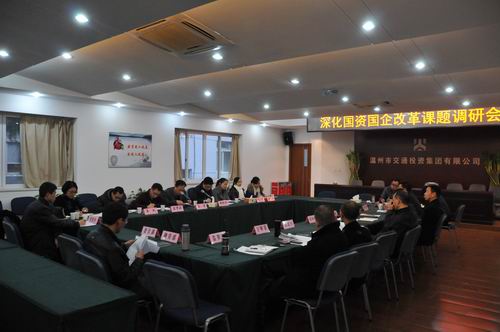 为深化国资国企改革,深入践行党的群众路线教育实践活动,3月11日下午,市国资委调研组一行在池清总经济师带领下来到交投集团开展关于“深化国资国企改革课题”的调研,会议在集团二楼大会议室召开,集团秦肖总经理主持会议,集团领导宋白桦、史佩忠出席会议,集团相关部门负责人参加。