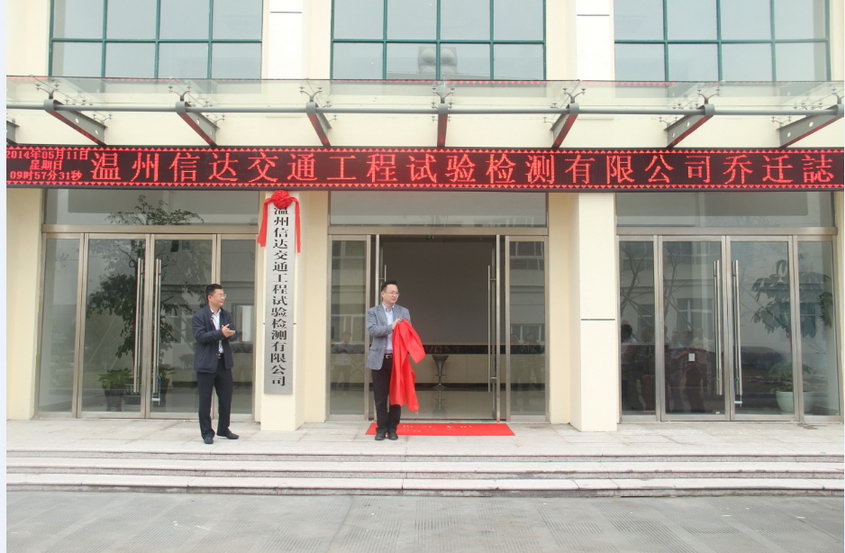秦肖总经理及周列茅总工程师为信达检测公司揭牌,新建检测大楼正式投入使用。