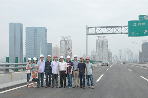 朱启荣处长一行满心欢喜地登上瓯江大桥,在认真听取李总关于瓯江过江通道工程整体概况、建设意义、施工工艺、施工进度等方面的详细介绍后,朱启荣处长对项目建设过程中所采用的新工艺、新材料、新技术和新设备表示赞赏,对项目在瓯江建桥史上书写的一项项纪录表示惊叹。当得知项目瓯江大桥三江互通至江滨路互通段有望在今年6月份试通车的消息时,考察组激动不已地表示,大桥的建设不仅仅是跨越瓯江2.3公里那么简单,它将对两岸人民的生活发生翻天覆地的变化,他们仿佛看到瓯江两岸建设的宏伟蓝图正在徐徐打开。