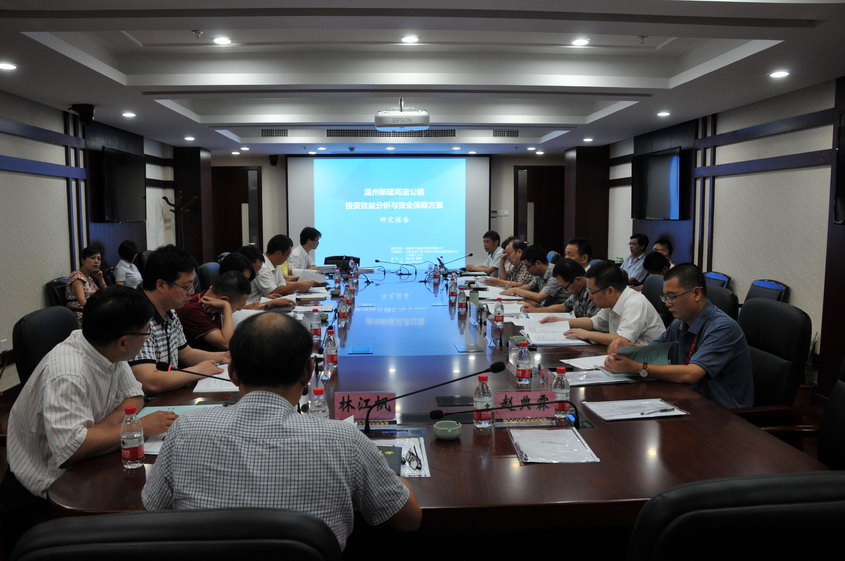 2014年8月1日下午,受温州市人民政府委托,温州市财政局在市交投集团九楼多媒体会议室主持召开了《温州新建高速公路投资效益分析与资金保障方案》研究报告(以下简称“研究报告”)专家评审会议。市政府副秘书长赵典霖、市交运局党委副书记徐锦栋、市财政局副局长林江帆、集团总经理秦肖出席会议,会议由市财政局林江帆副局长主持。参加会议的有课题调研领导小组成员、市财政局、市交通运输局、市发改委、市国土局、市规划局、市金融办、市国资委、市交投集团、市名城集团、市铁投集团、市教投集团、省交通规划设计院等单位专家及课题研究人员,并成立了专家组。