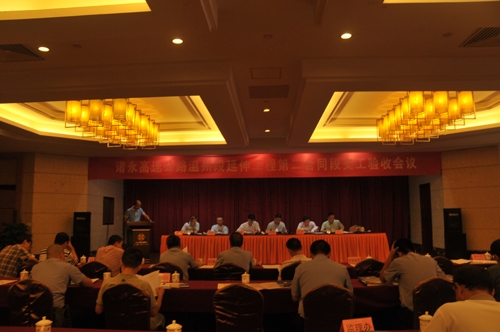 下午,通道公司宣读了本项目第二合同段工程交工验收质量评定报告及交工验收报告。土建第二合同段工程各项指标基本符合设计和规范要求,交工质量评定分91.1分,顺利通过交工验收。各有关单位及部门对第二合同段的工程实体、外观质量、内业资料等各项工作的情况表示认可,并给予高度评价。最后,省交通运输厅、市交通运输局领导,分别对本次交工验收的圆满表示祝贺并作重要讲话。同时,希望本项目再接再厉,继续发扬不怕苦、不怕累的奋斗精神,全力投入诸永高速公路温州段延伸工程第一合同段及附属工程建设,确保完成年内全线通车的重大目标任务。