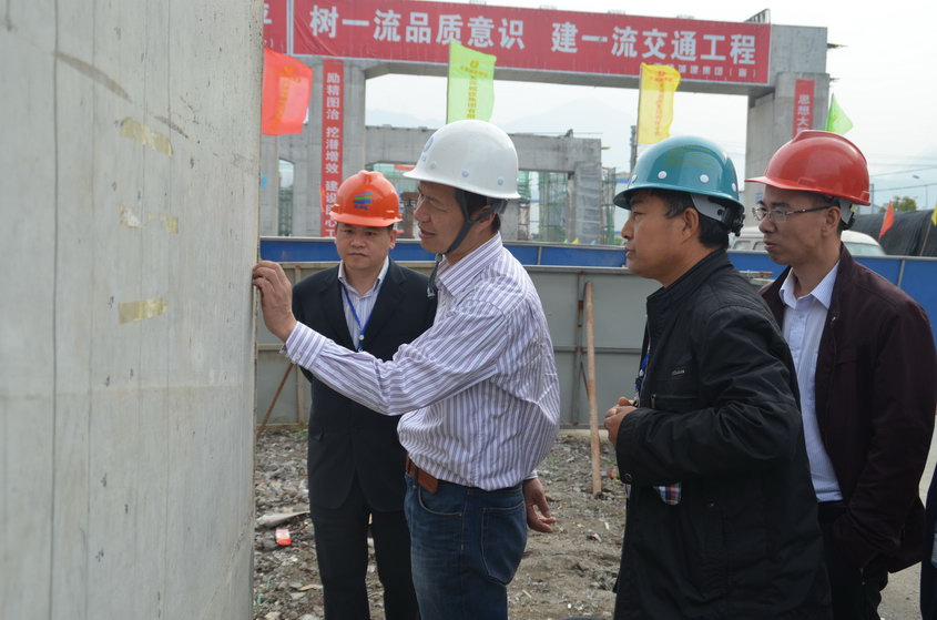 4月20-24日,省交通运输厅工程质量监督局局长邵宏率检查组对绕西南项目开展执法大检查。省厅质监局副局长丁正祥,市交通质监局局长周建华、副局长王光达和项庆明、绕西南公司副总经理陈照亮等陪同检查。集团总经理秦肖出席反馈会。