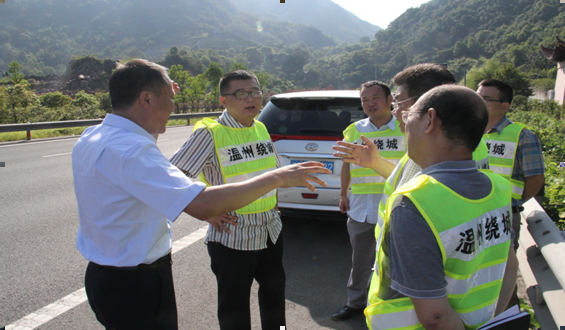 秦董一行先后现场检查了温州大桥及绕城段 “迎国检”专项工程实施与安排以及“生态美丽示范路”施工情况,详细了解了日常养护管理、交通安全设施维修、保洁与垃圾清理等情况,对“两路两侧”、“四边三化”、“生态美丽示范路”工作改善作出指导性意见。