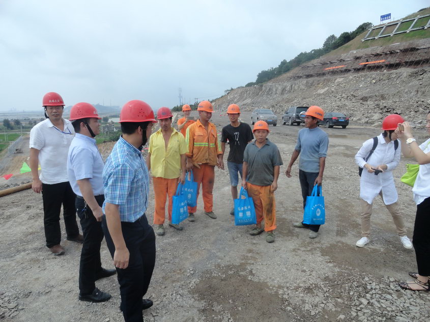 8月11日上午,温州市总工会副主席李云中、市总经济工作部部长梁文等领导高温慰问监理公司乐清疏港公路监理办一线员工。市重点办工程管理处副处长王建荣、乐清市总工会等相关人员陪同。