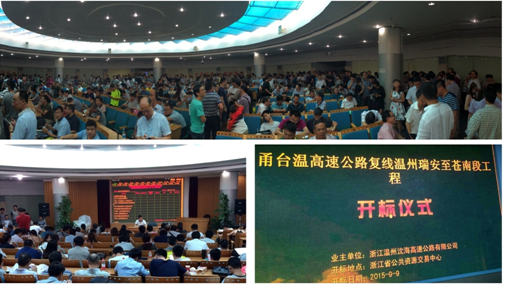9月9日,甬台温高速公路复线温州瑞安至苍南段工程主体土建施工剩余12个标段在浙江省公共资源交易中心盛大开标。该工程作为一个独立的公路工程项目,是温州市历史上迄今为止投资最大的公路工程项目,也是迄今为止浙江省历史上投资额度第二大的公路工程项目,本次招标的是继今年1月本项目控制工程招标之后对主体土建剩余的12个标段进行招标,吸引了全国广大知名企业的关注,经初步统计,共有335家单位参与投标,有效投标人269家,创造了浙江省一个独立公路工程项目一次性招标中投标人数量的历史之最,开评标现场人山人海,盛况空前。